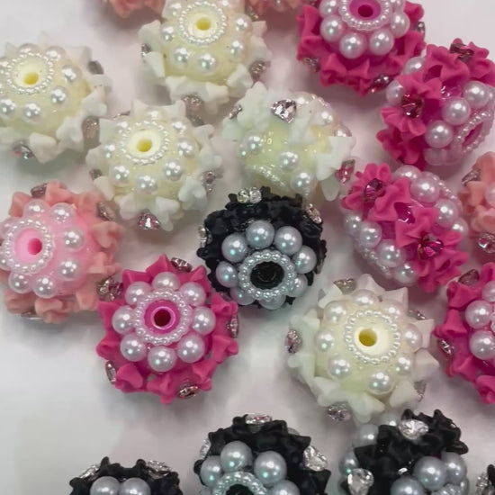 Fancy acrylic base bead ornaments with pearl and heart shape rhinestione crystal ,colored ,random mix