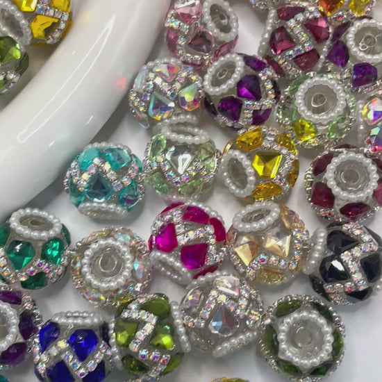 fancy bead acrylic transparent base bead ornaments with pearl and diamond shape glass stone and rhinestone chain colored ,random mix lol
