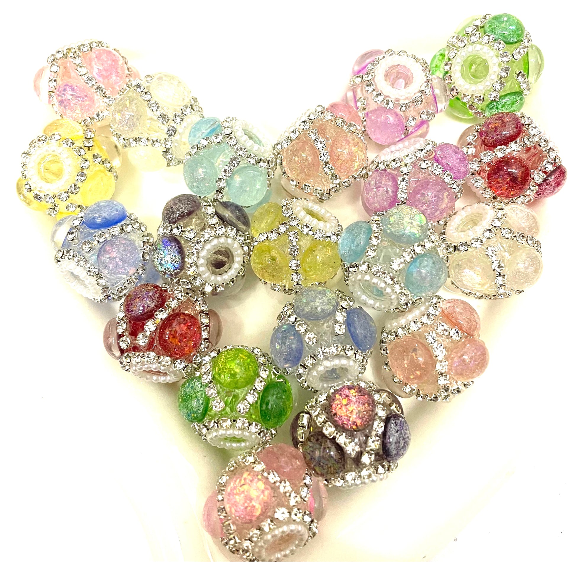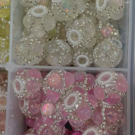 Fancy bead glitter round bubble with pearl and rhinestone chain fancy beads random mixed