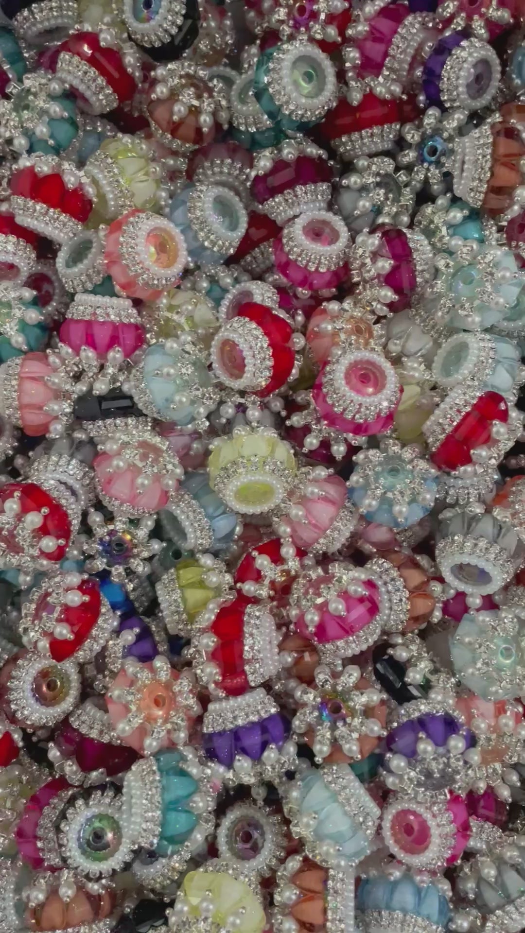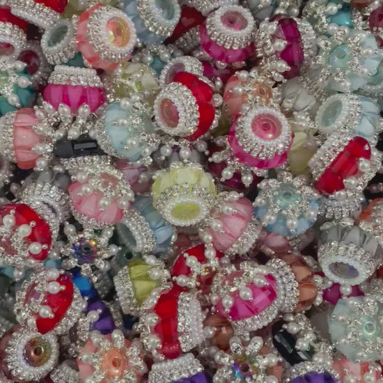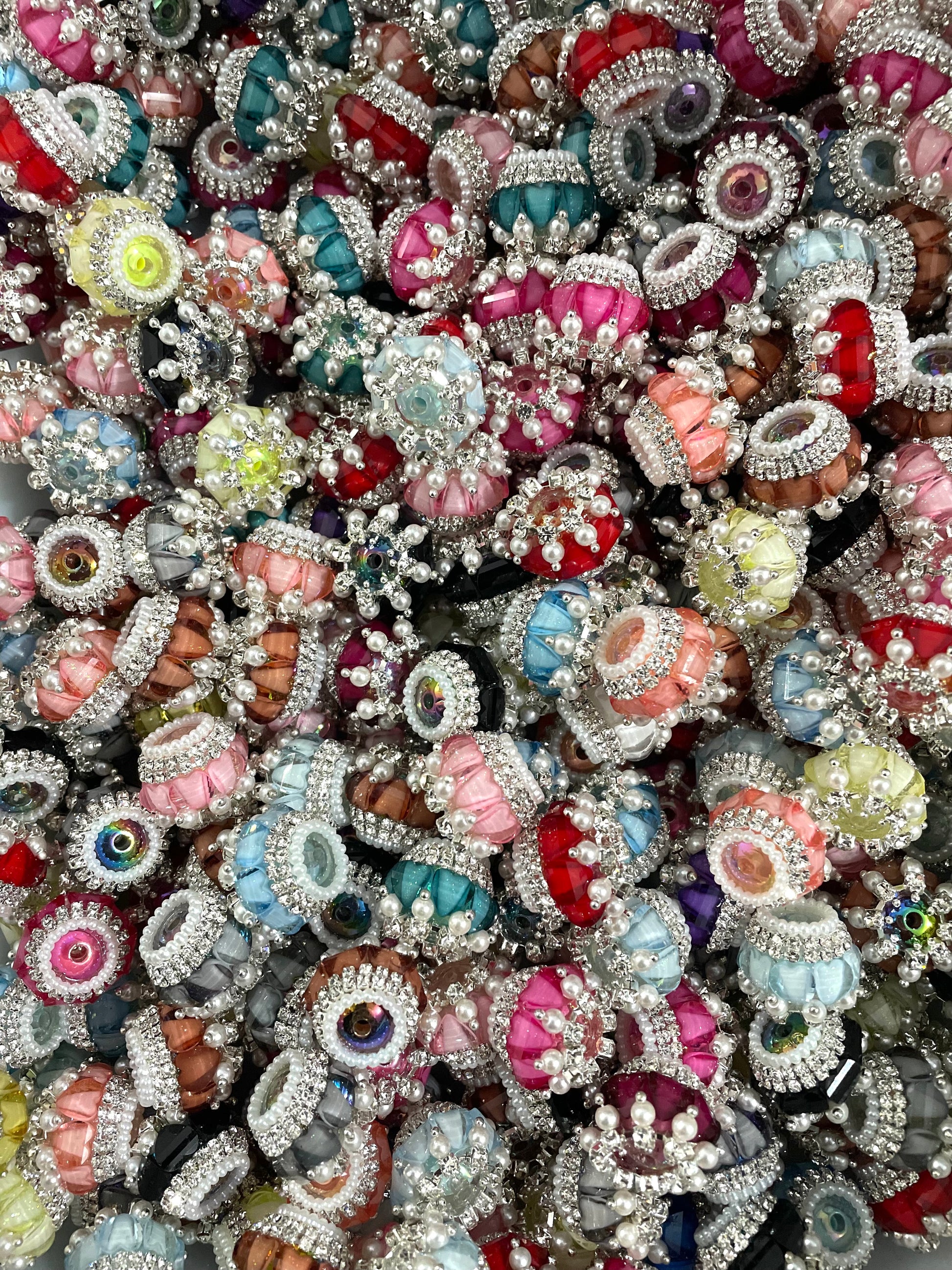 Beaded beadable fancy bead diy bead ornaments with pearl rhinestone chain and heart shape acrylic,random mix color 20mm to 21mm