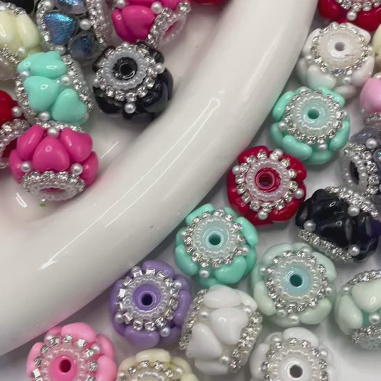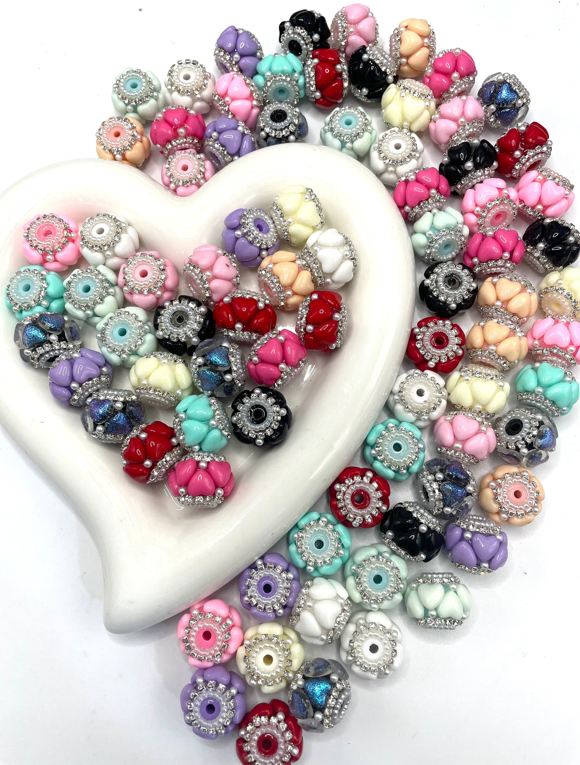 Fancy bead craft with heart and pearl and rhinestone chain,mix color 18mm to 19mm