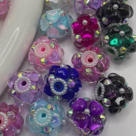 fancy bead fancy bubble heart shape crystal rhinestone ornaments with pearl diy beads colored random mix