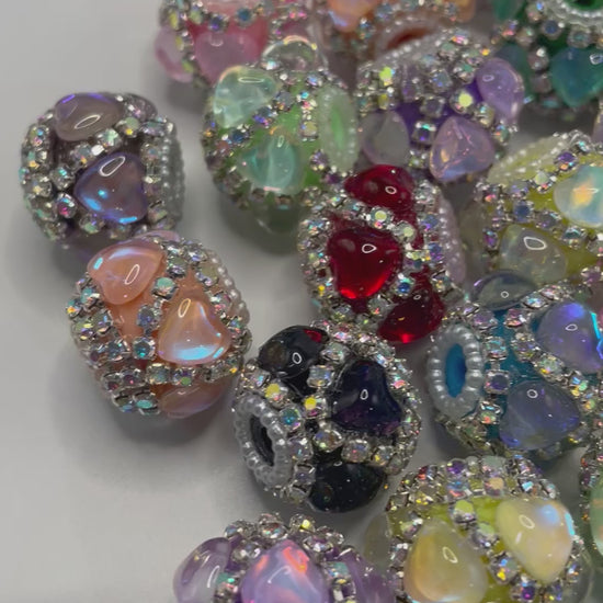 fancy bead fancy crystal heart ornaments with rhinestone chain and pearl 20mm to 21mm irregular shape random mix diy beads