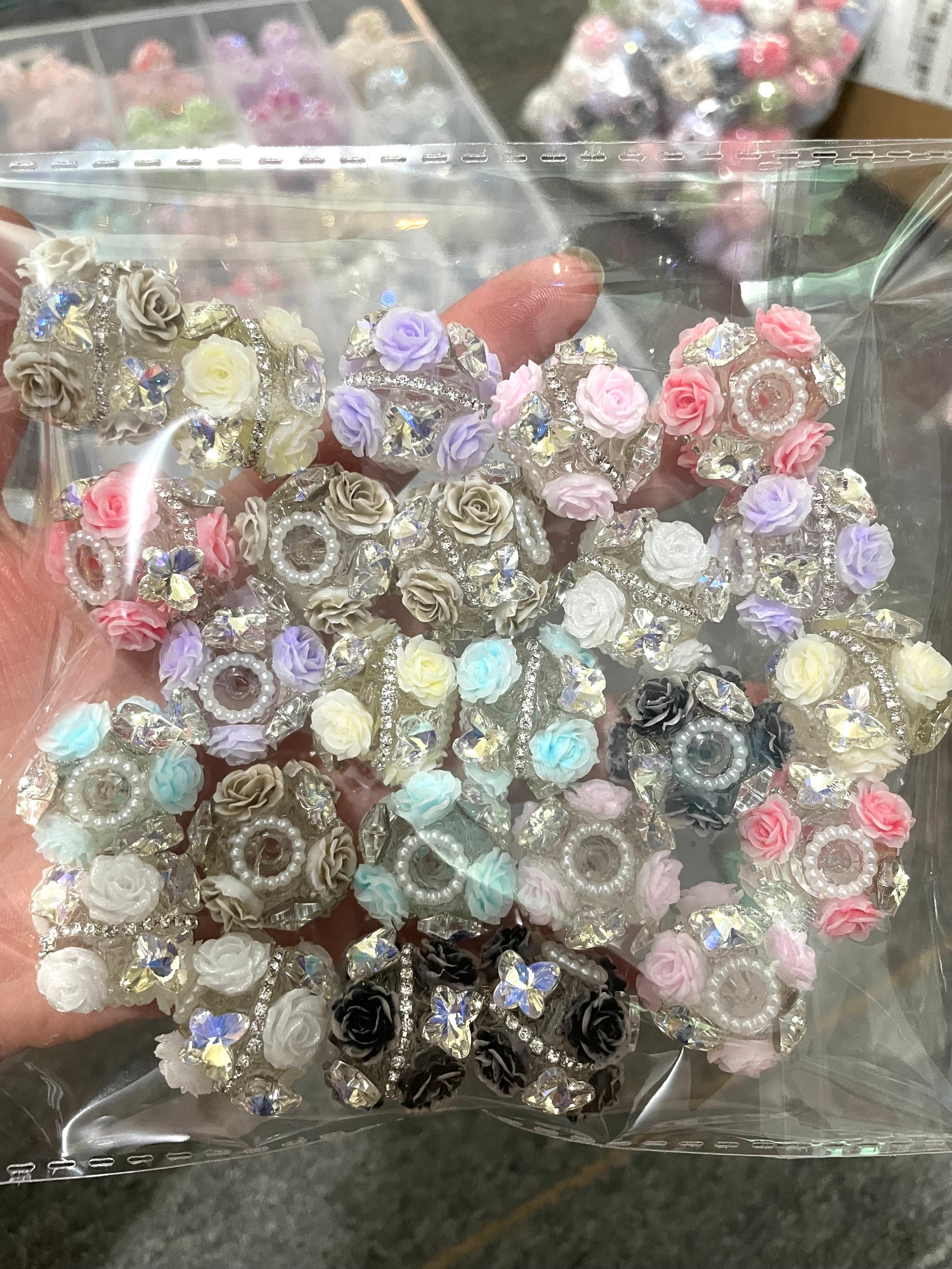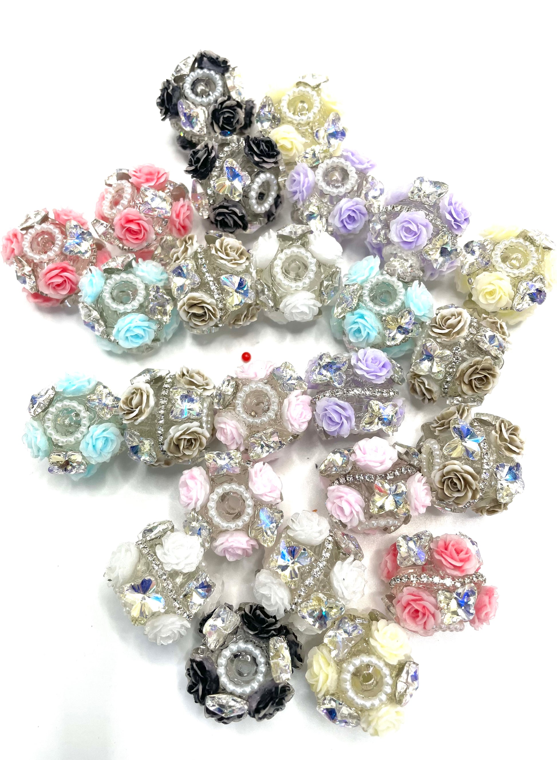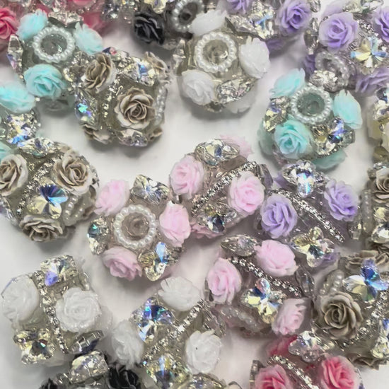 fancy beads rose flower with crystal butterfly and chain flower beads
