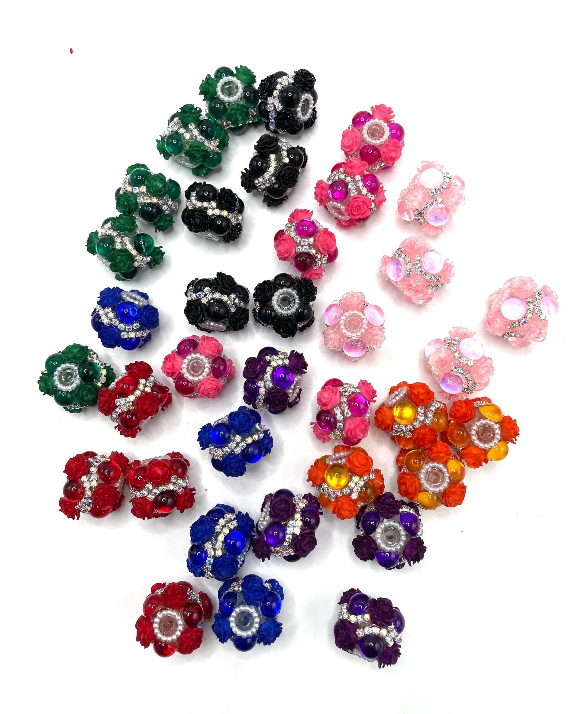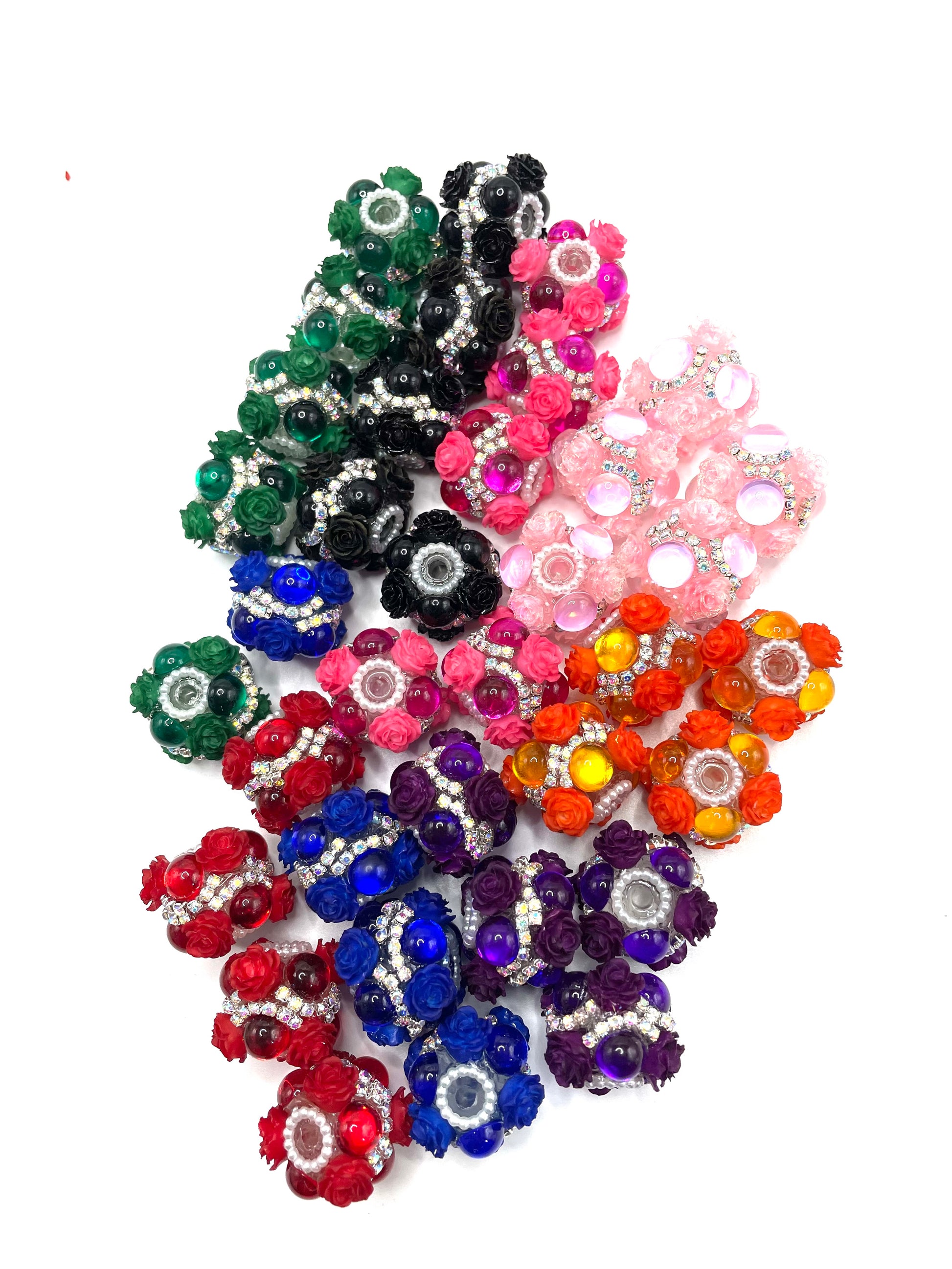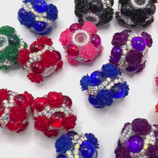 fancy flower beads beaded beadable ornaments with bubble and pearl and silver rhinestone chain