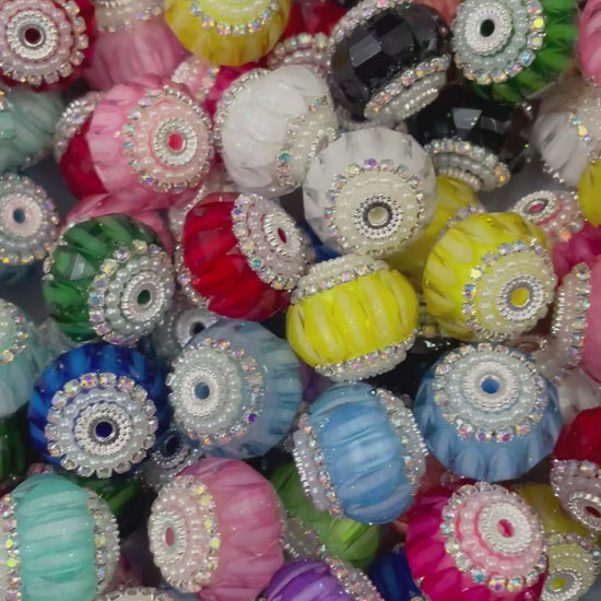 beaded beadable fancy lantern beads ornaments with pearl and rhinestone chain ,colored ,random mix