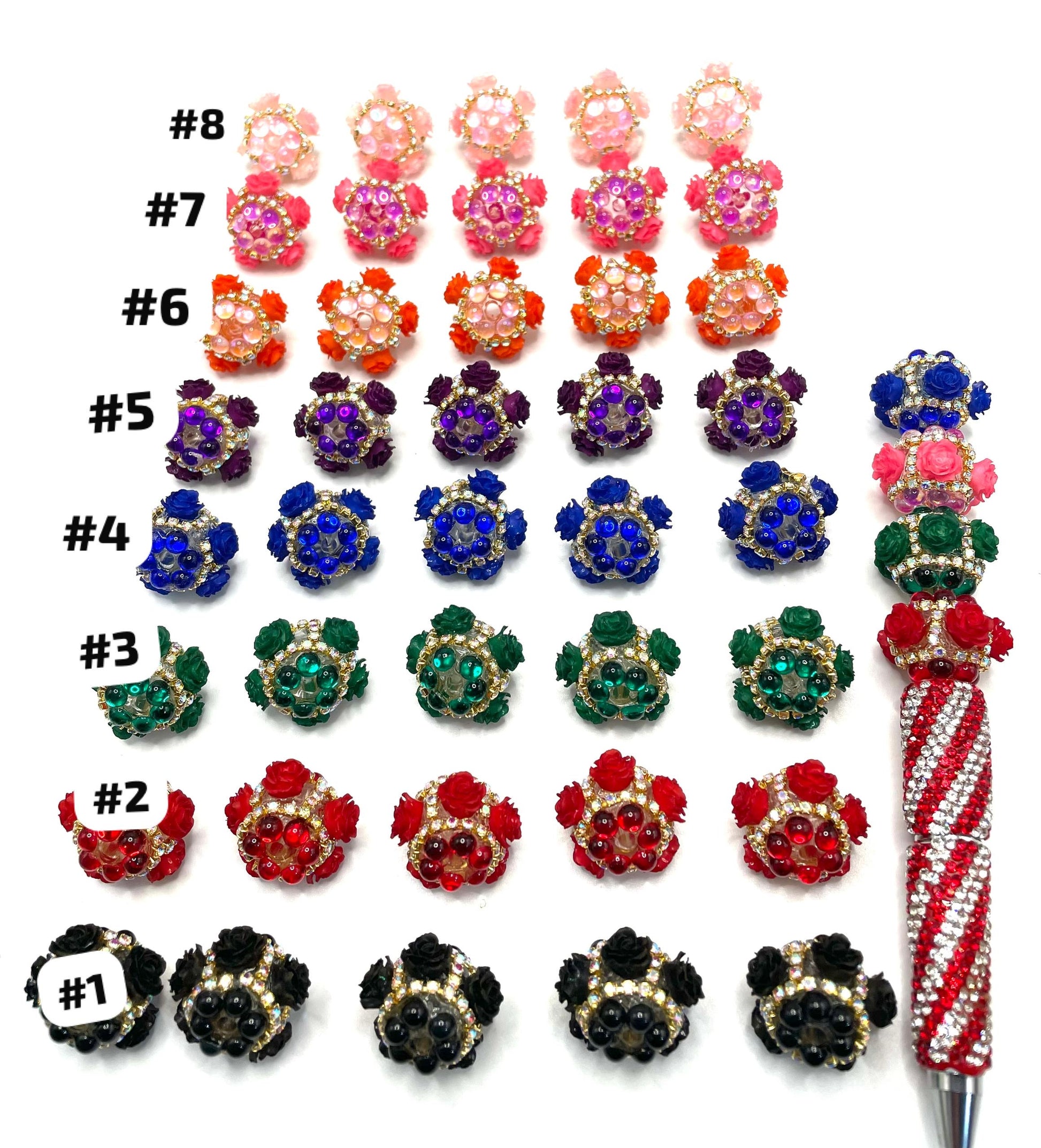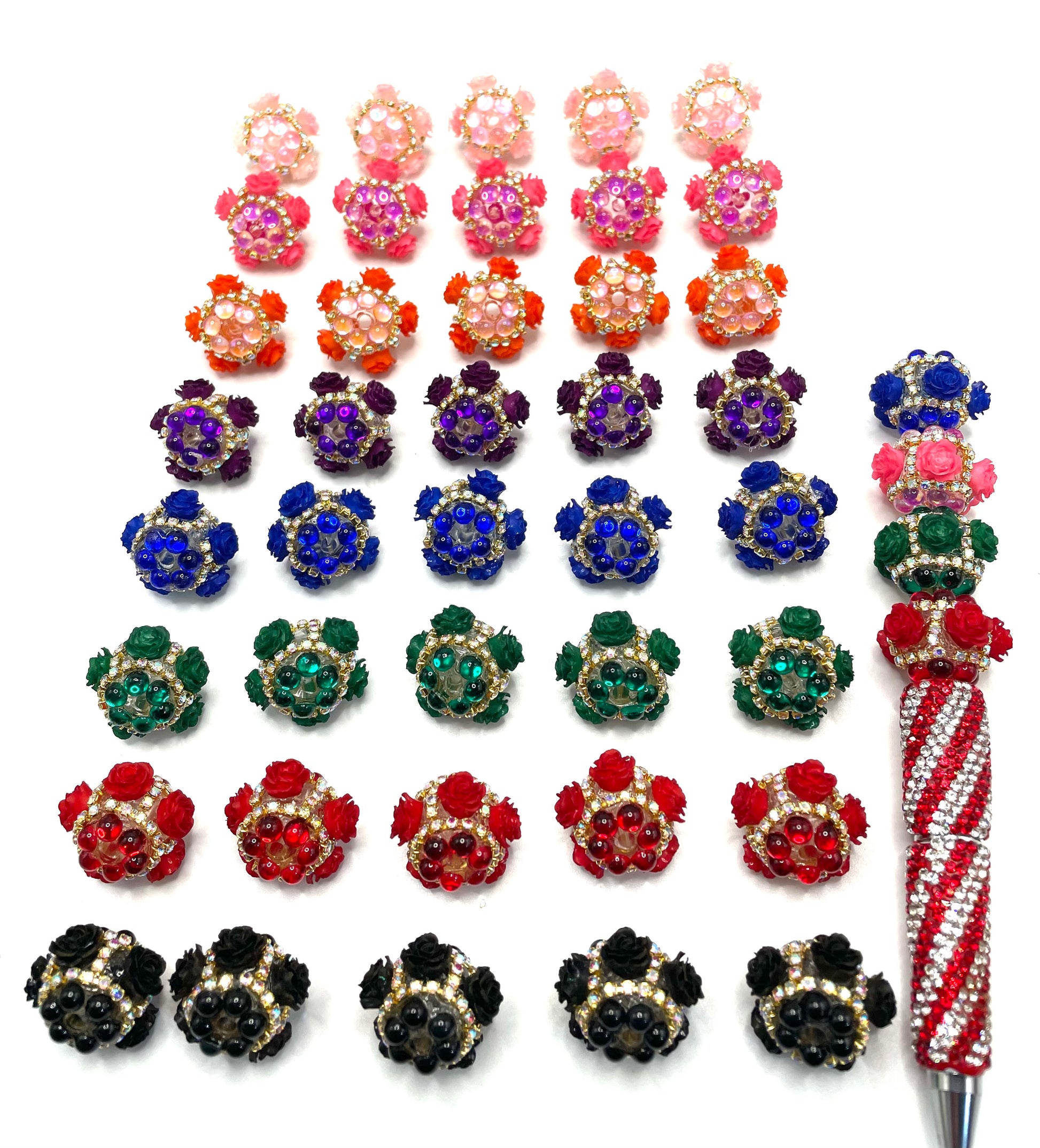Fancy rose bead with gold color rhinestone chain and bubble clear base bead ,colored ,random mix