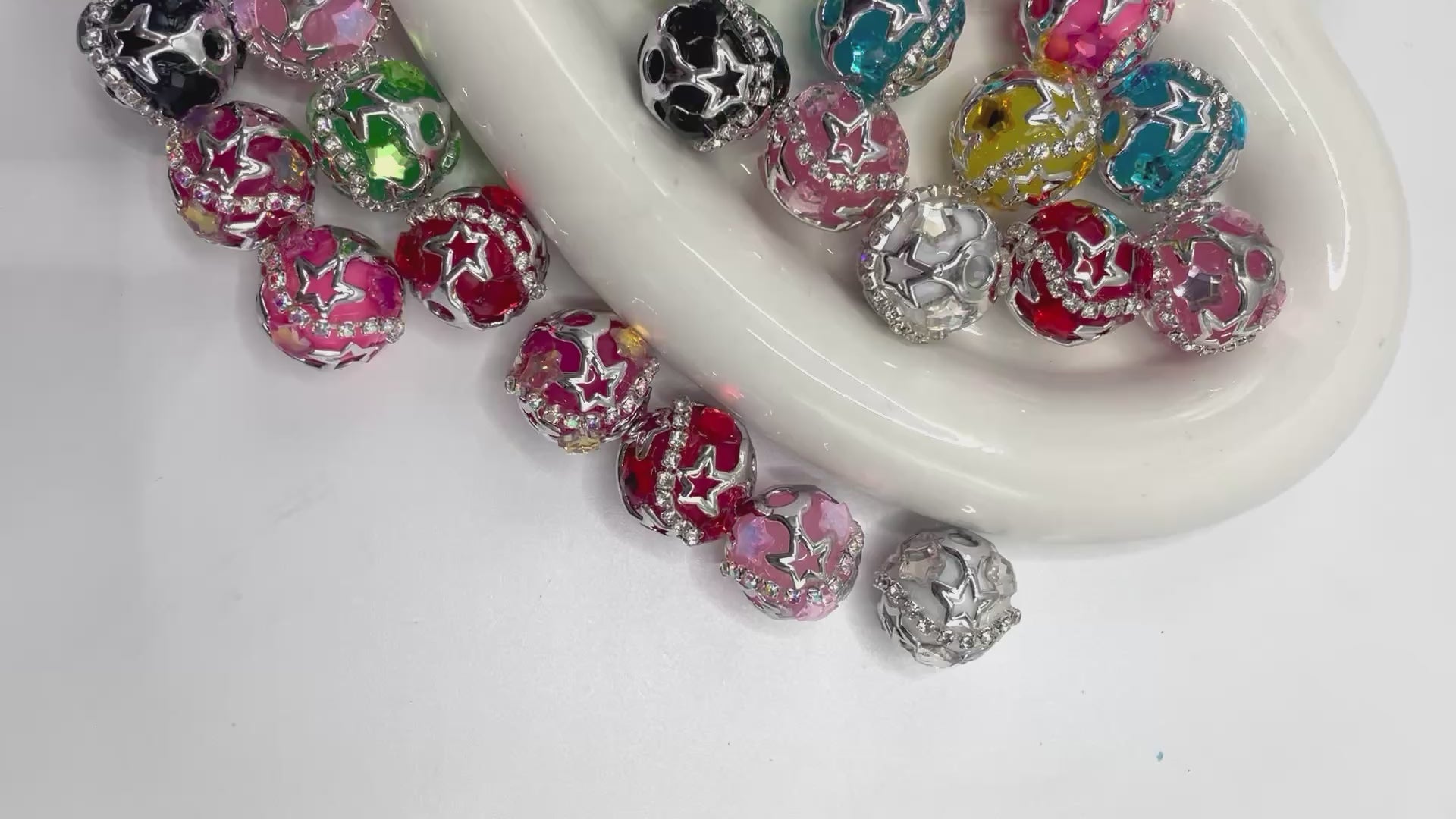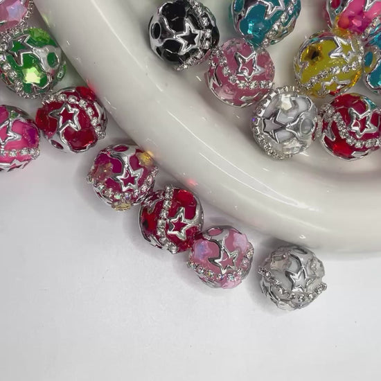 beaded beadable fancy star bead ornaments with silver color rhinestone chain and cover by metallic silver star bead cap,random mix