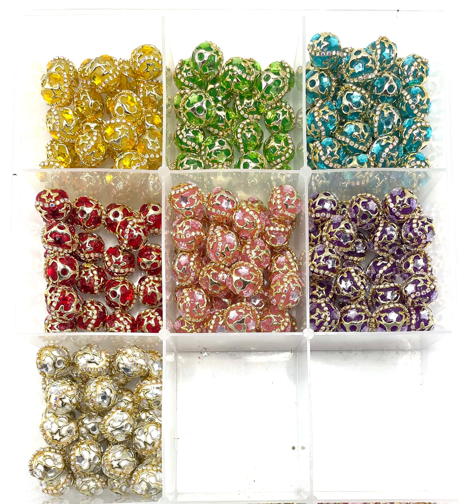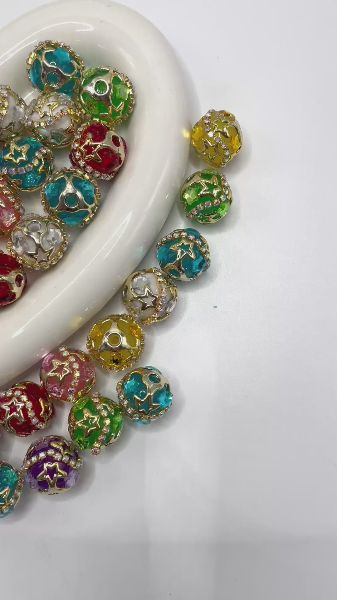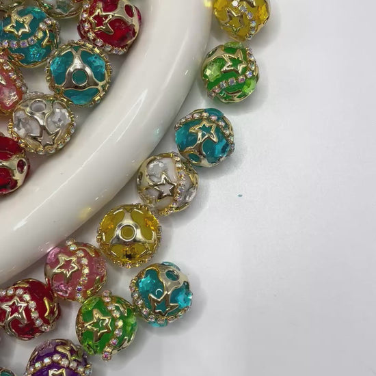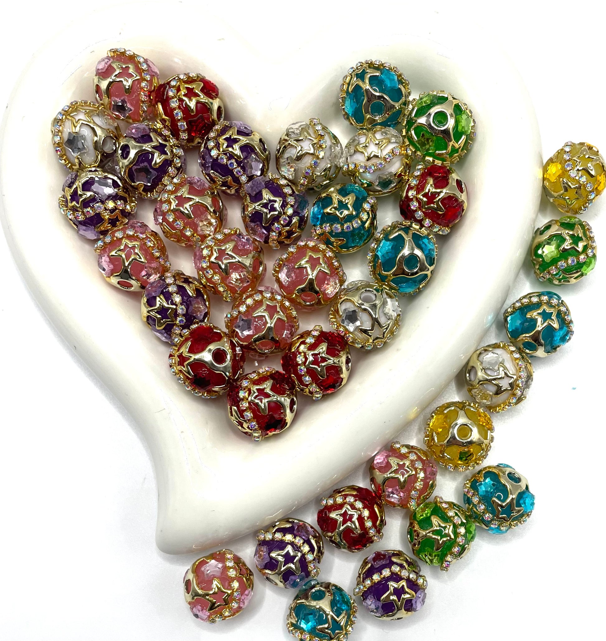 beaded beadable fancy star bead ornaments with gold color rhinestone chain and cover by metallic gold star bead cap,random mix