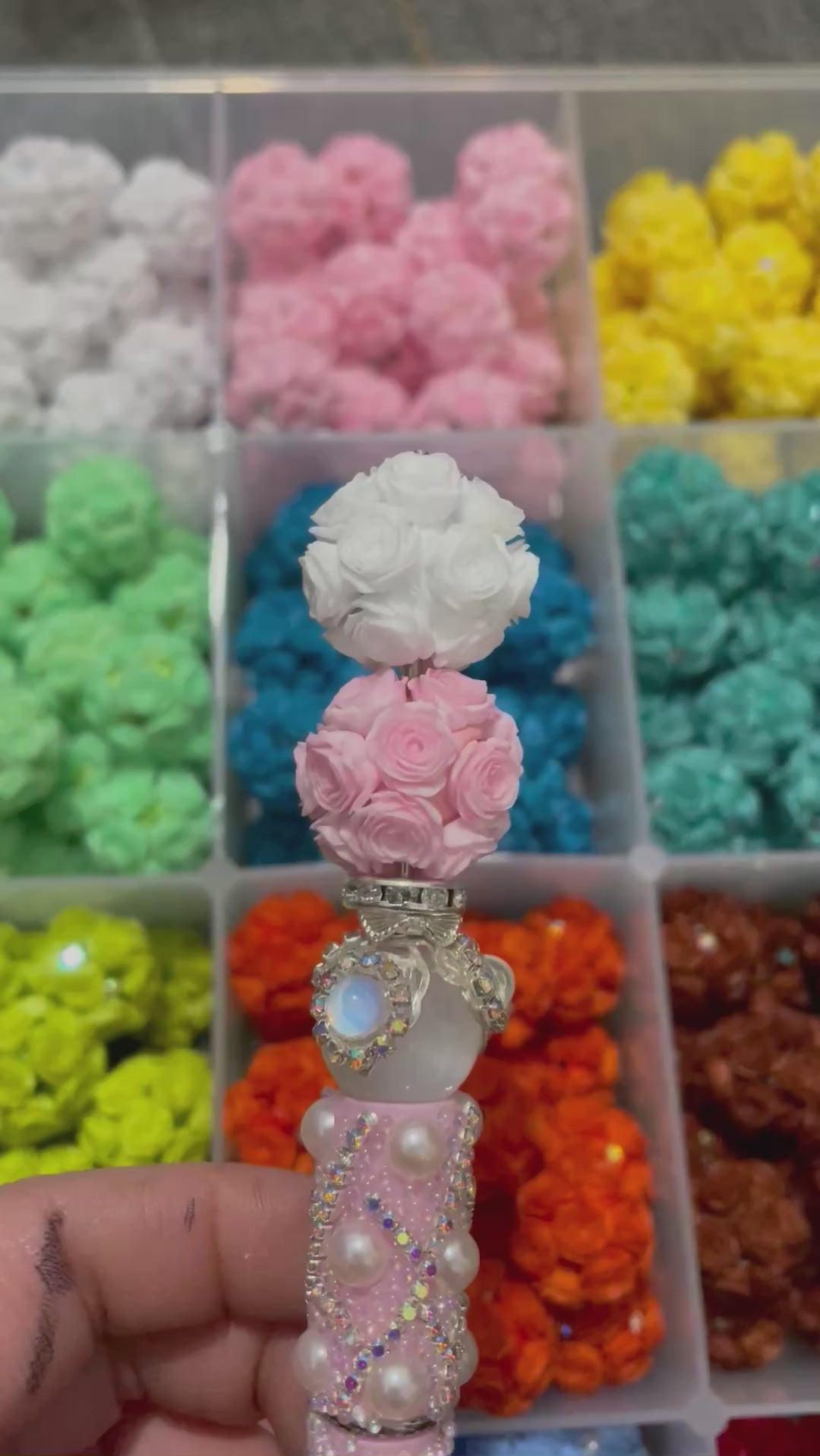 DIY soft rose flower beads ornament with rhinestone beaded beadable flower colored