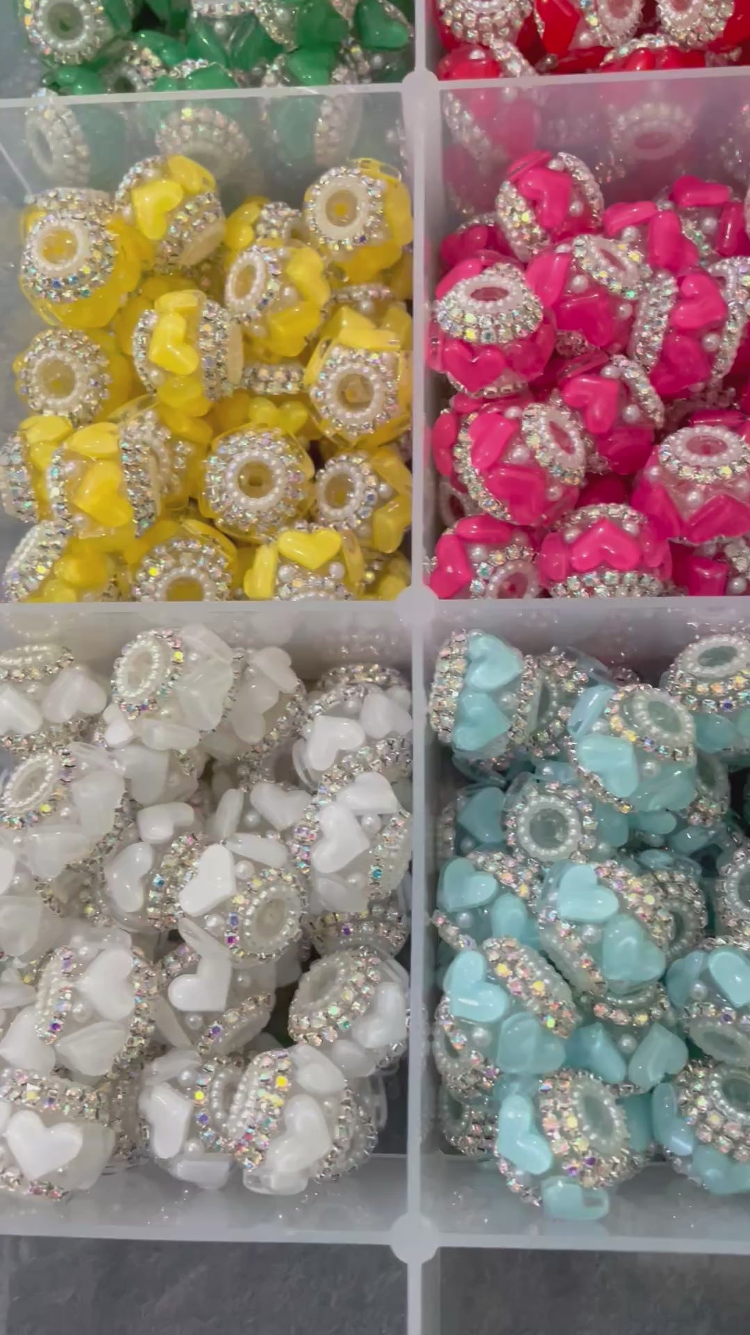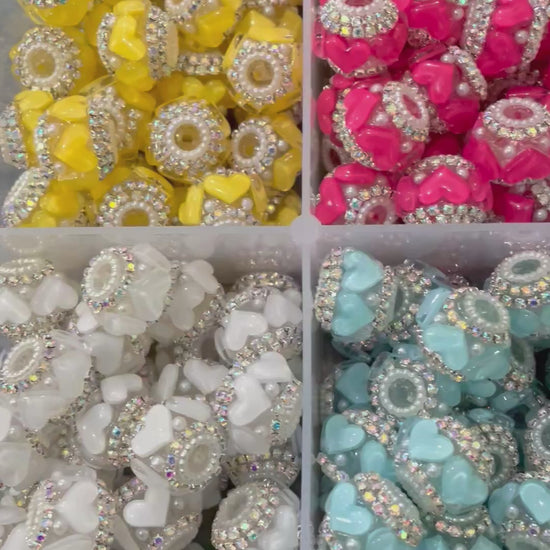 diy beaded beadable heart shape fancy beads ornaments with pearl and rihnestone chain,colored ,random mix
