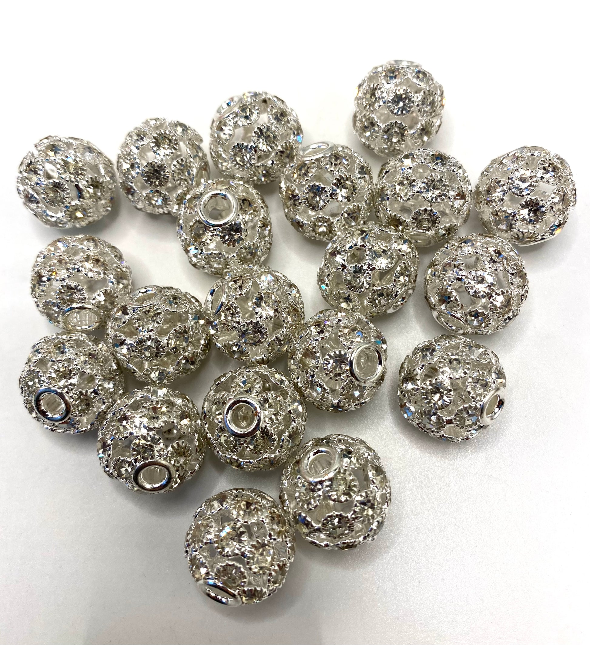Metal Gold & Silver Hollow Ball with AB Rhinestone Alloy Beads,Random Mix,16mm