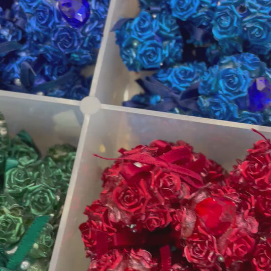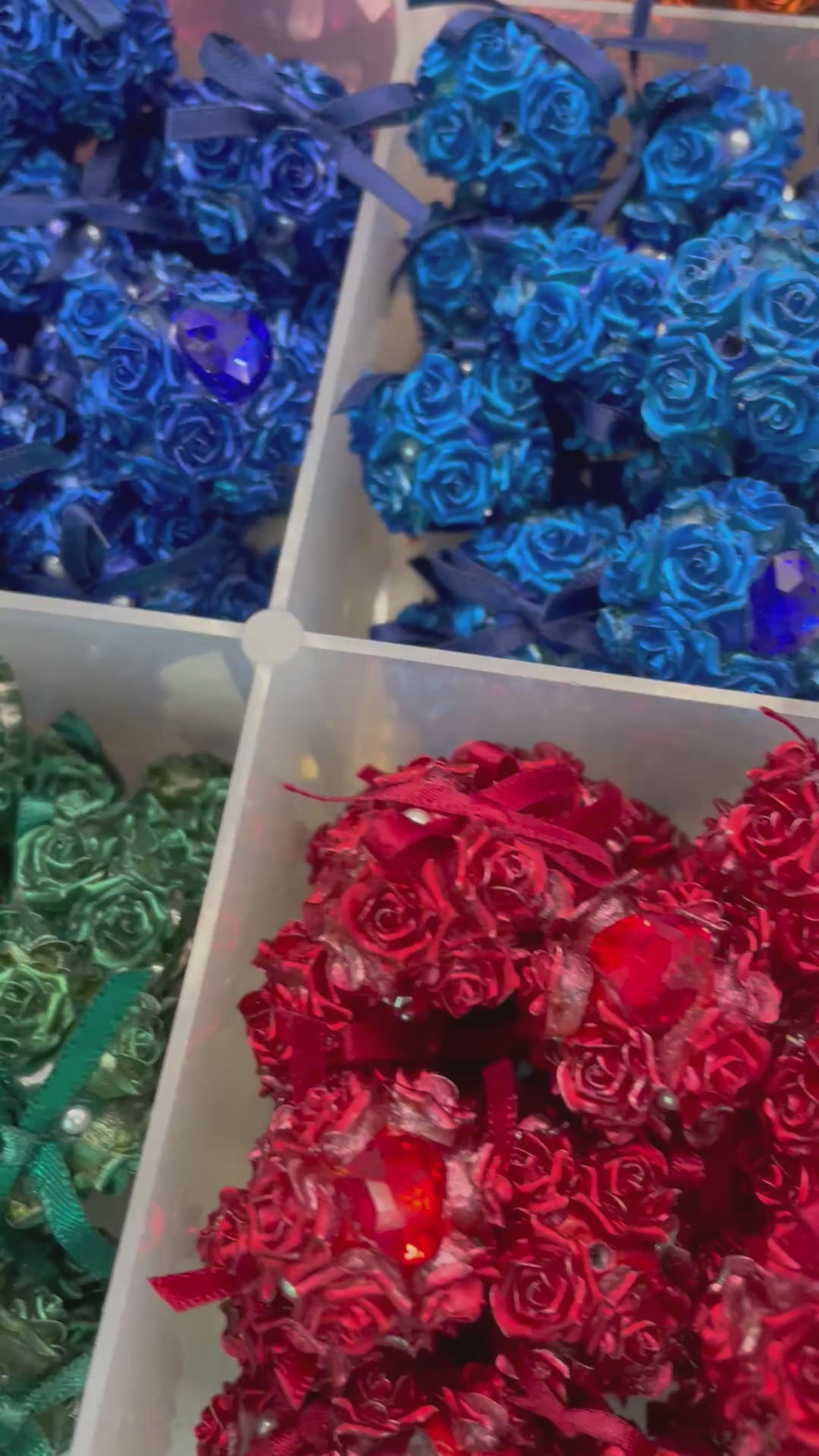 metallic looking bow flower with heart flower bead clay base bead with rose flower and bow with pearl colorful ,random mix