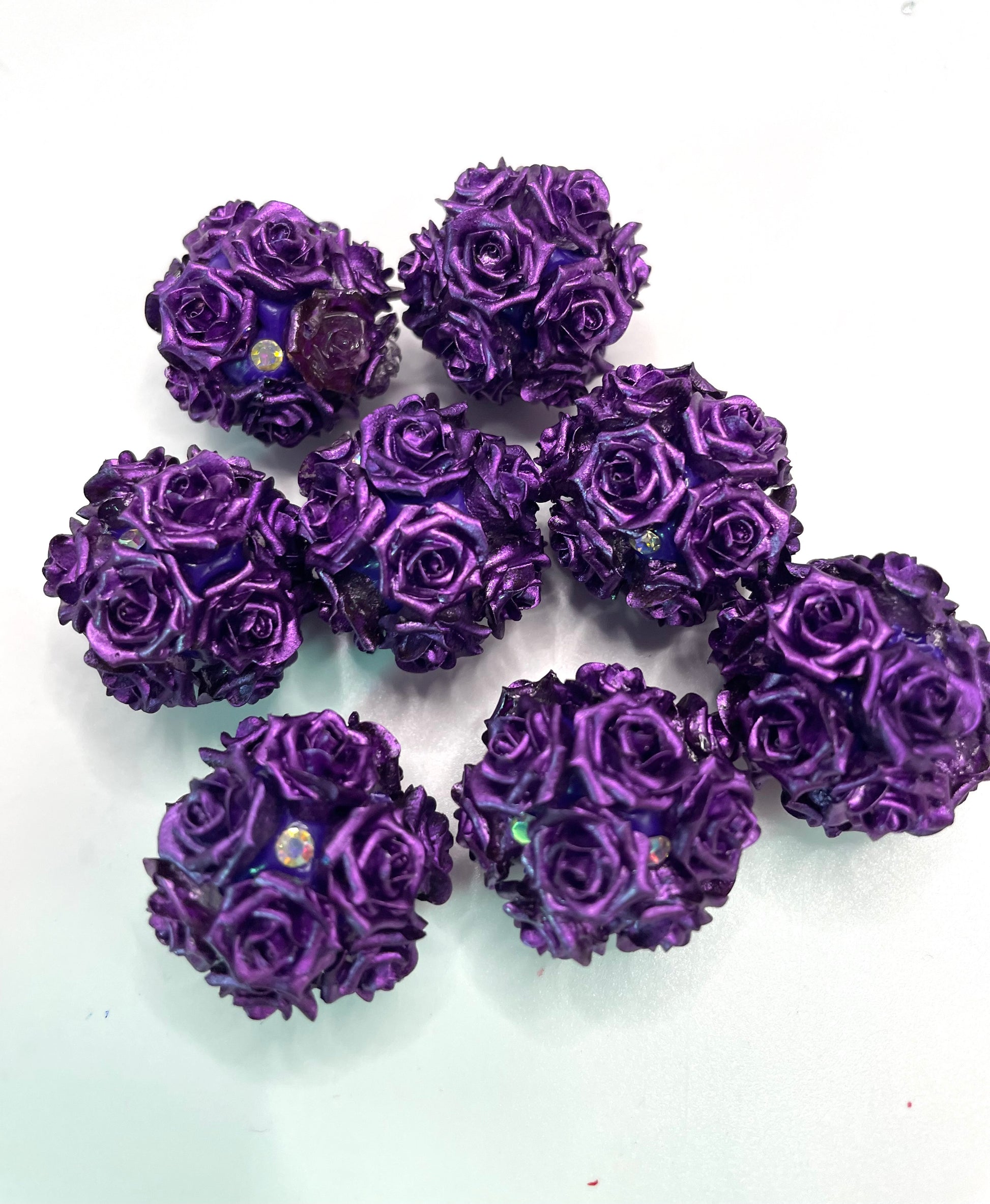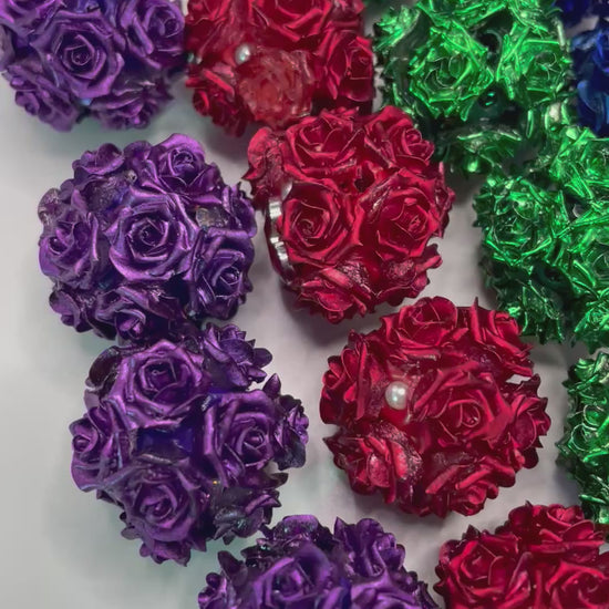 metallic looking rose flower beads ornaments with rhinestone,colored ,random mix,christmas vibe color