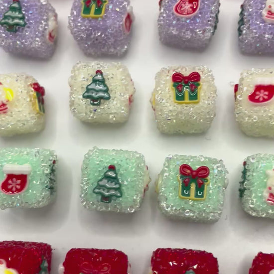 sugar square beaded beadable Christmas bead ,colored ,random mix