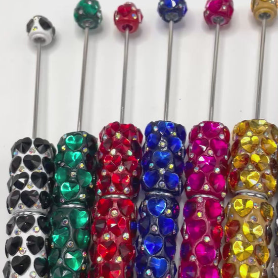 Beaded beadable fancy rhinestone pens heart shape crystal rhinestone pens colored ,random mix