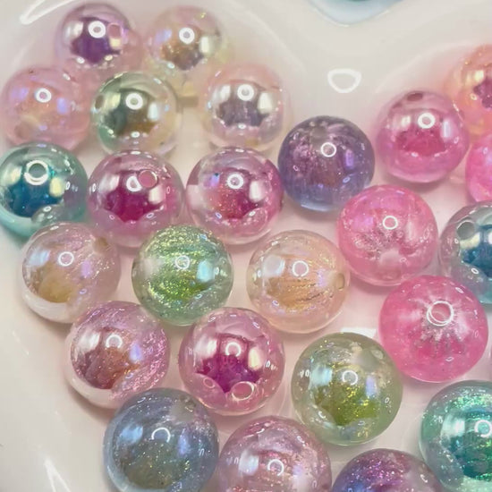 beaded beadable acrylic UV glitter galaxy beads ,random mix colors