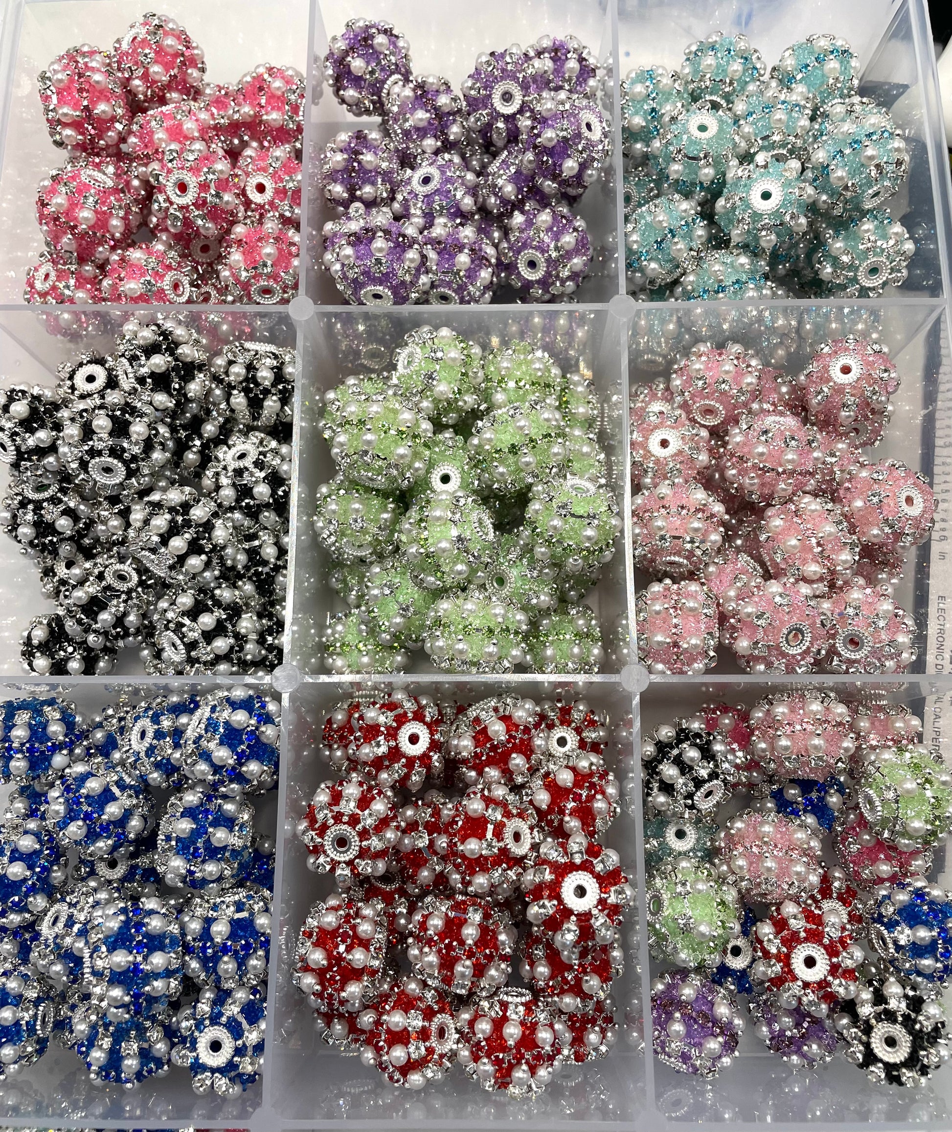 Please noted that because the base bead the surface wrap by sugar rhinestone powder ,sometimes it can the sugar rhinestone powder can drop out ,it doesn’t effect your diy crafting using .